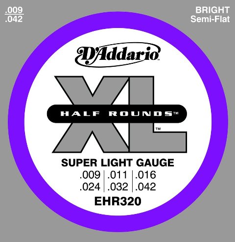 Струны для электрогитары D'Addario EHR320 Half Round Super Light 9-42 из нержавеющей стали. Покрытие: нержавеющая сталь, термическая обработка. Обмотка: полукруглая. Размеры струн: 9-11-16-24-32-42.
