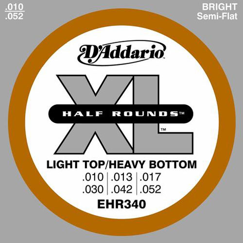 Струны для электрогитары D'Addario EHR340 Half Round Light Top Heavy Bottom 10-52 из нержавеющей стали. Покрытие: нержавеющая сталь, термическая обработка. Обмотка: полукруглая. Размеры струн: 10-13-17-30-42-52.