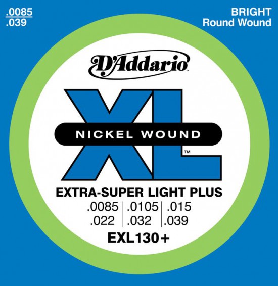 Струны для электрогитары D'Addario EXL130+ Nickel XL Extra-Super Light 8.5-39 с круглой никелвой обмоткой. Размеры струн: 8.5-10.5-15-22-32-39.