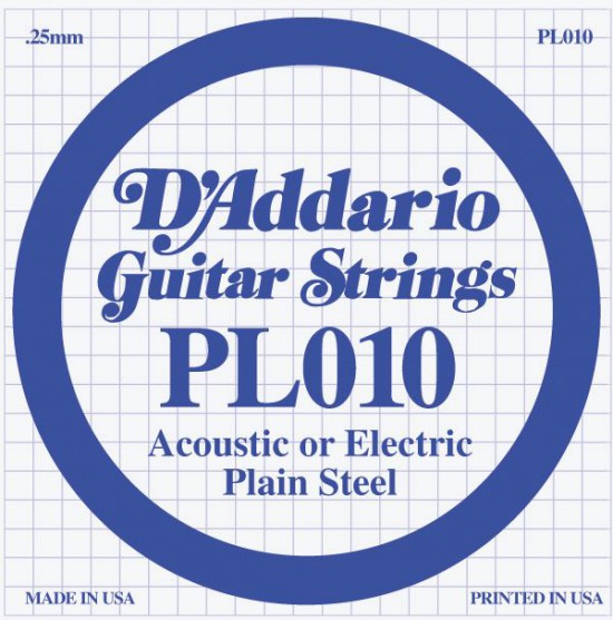 Отдельная 1-я струна D'Addario PL010 для электро и акустических гитар, 0.010".
