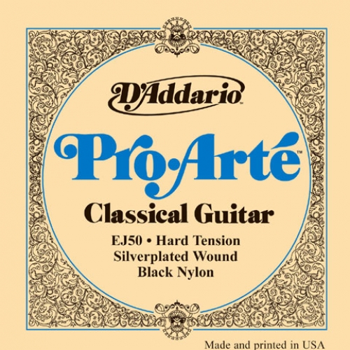 Струны для классической гитары D'Addario EJ50 Pro-Arte Hard Tension 28-44. Материал: черный нейлон и серебро. Сильное натяжение.