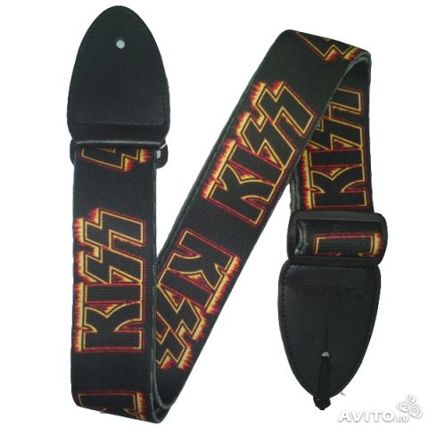 Ремень для гитары Virtuozo 02526 , KISS , 5 см , терилен , кожа 4 мм , чёрный фон .