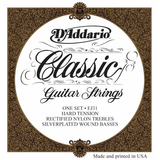 Комплект струн для классической гитары D'Addario EJ31 Classic Hard Tension. Нейлон. Сильное натяжение, серебряная обмотка басовых струн.