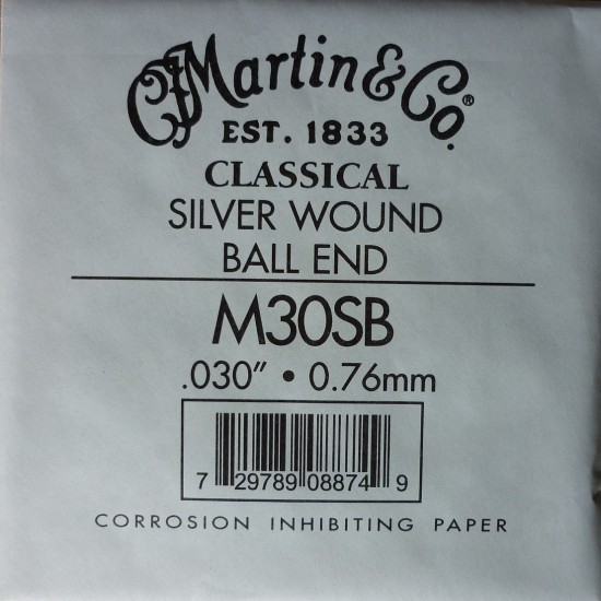 MARTIN M30SB. Классик материал сердечник: Нейлон мультиволокно, кругловитые: Посеребренная медь, мензура: Стандарт, толщина, дюйм: .030, натяжение: Сильное, конец: Шарик,