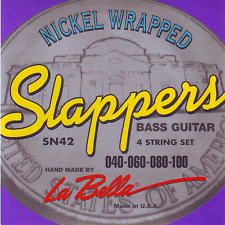 La Bella SN42 Slappers Custom Light. Комплект струн для 4-струнной бас-гитары. Основа - стальной керн в оплетке из нержавеющей стали и поверх в внешней никелированной оплетке. 040 060 080 100