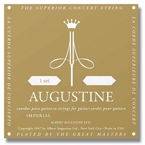 Augustine Imperial-Gold. Комплект струн для классической гитары, материал первых струн - Imperial полимер среднего натяжения, басовые - медные в позолоченной оплетке среднего натяжения (0287"-0327"-0406"-0315"-035"-0445")